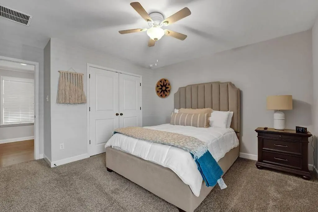 The 3-bedroom Modern 3-Bedroom Home With Patio And Fire Pit is a 15-minute ride from the restored 19th - century performance hall "Orpheum Theatre" and a 15-minute drive from from the Minor League AutoZone Park Baseball Stadium. 4 bathrooms, 3 bedrooms and a kitchen are provided on the premises.
